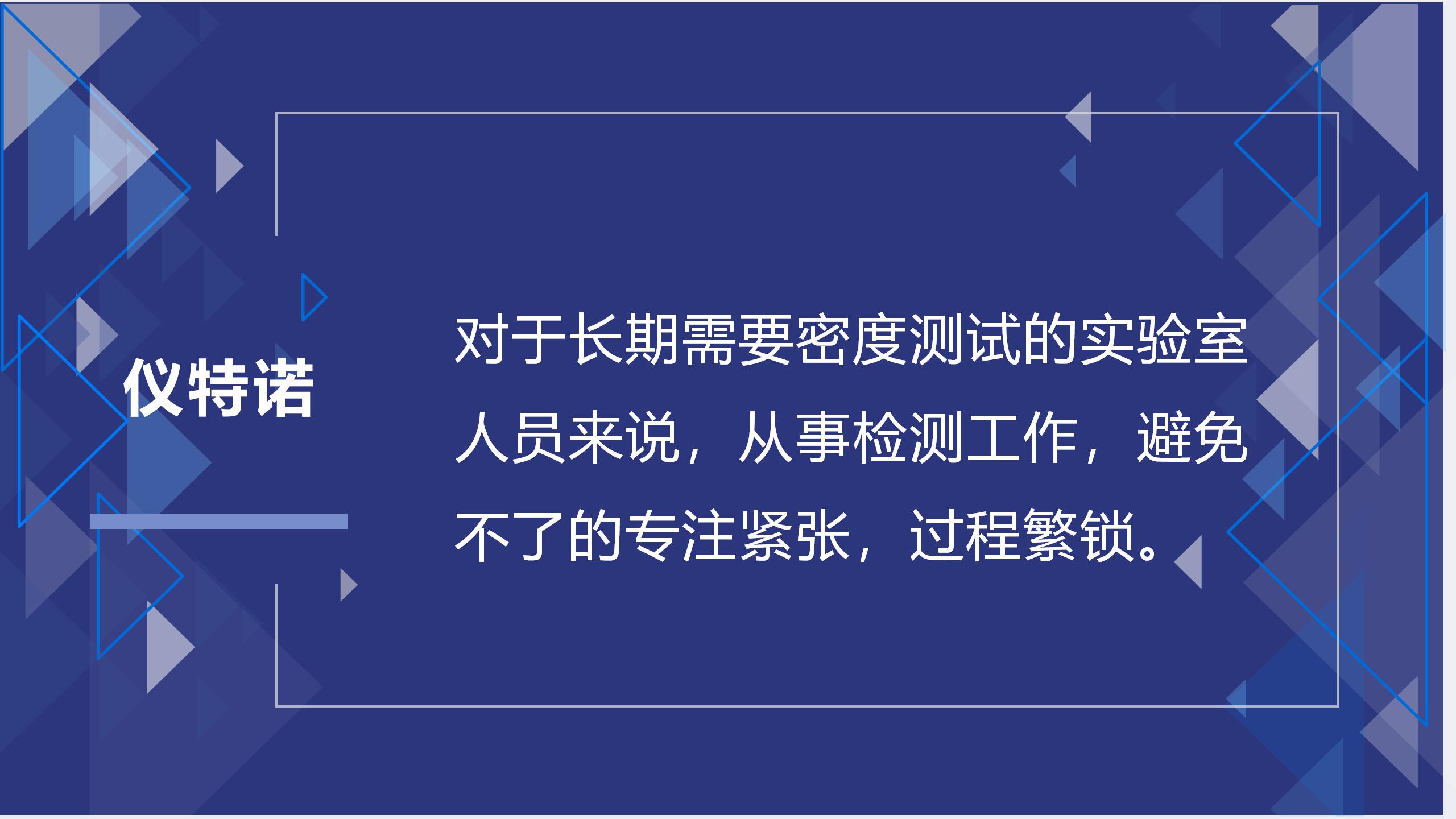 對(duì)于長(zhǎng)期需要密度測(cè)試的實(shí)驗(yàn)室人員來(lái)說(shuō),從事檢測(cè)工作,避免不了的專(zhuān)注緊張,過(guò)程繁煩,有了儀特諾固體密度測(cè)試儀,讓你的【密度檢測(cè)】工作從此變得每天都很輕松,很簡(jiǎn)單!