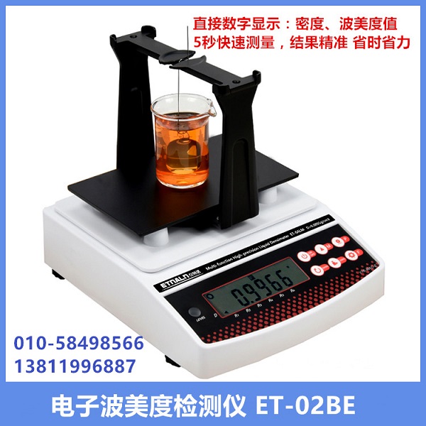 ET-01BE,ET-02BE產(chǎn)品是根據(jù)阿基米德原理,自動顯示波美度Bé、密度值D ,測量精度高、快速、簡單;密度>1,<1 皆可測量。