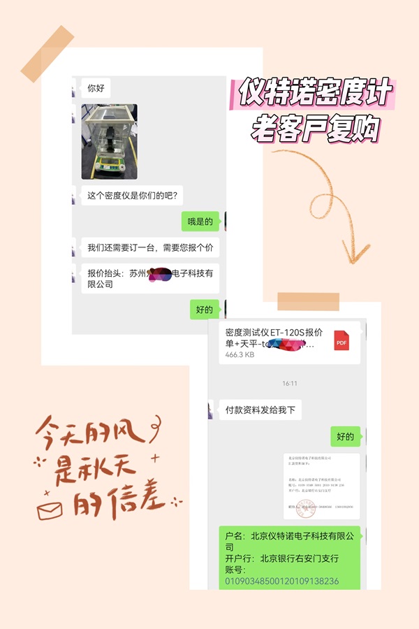 16年來,儀特諾密度計憑借卓越的品質(zhì)和貼心的服務,贏得了眾多客戶的信賴。許多老客戶在開新廠或擴大生產(chǎn)時,依然選擇復購我們的產(chǎn)品;更有客戶主動向朋友推薦,成為儀特諾的“代言人”。這些信任與支持,是我們不斷前行的動力。
